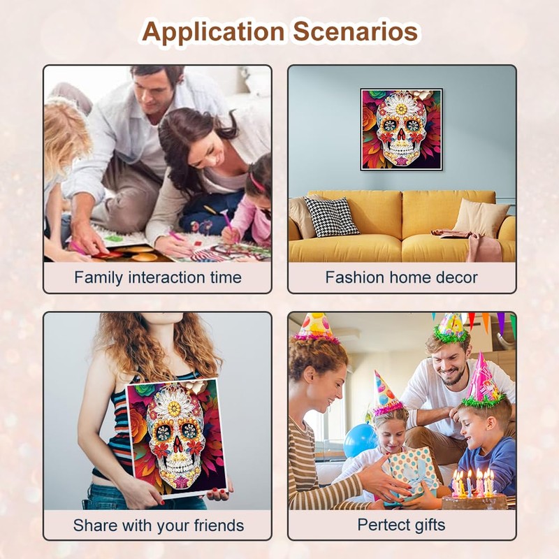 - [Easy & Fun Process] The numbers and symbols on the HD canvas are clear and easy to read. The skull diamond art painting we choose is carefully selected by the team, when you finish this work, you will definitely feel full of accomplishment and love this diamond dots art