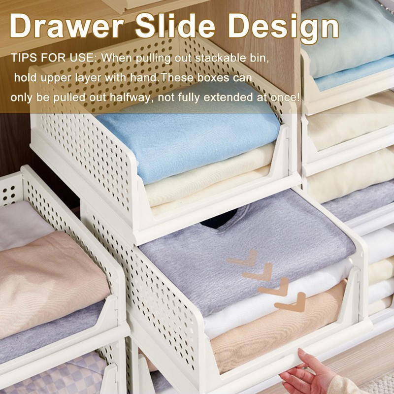 - 【Space-Saving】 Thanks to their foldable and stackable design, closet organizers make efficient use of vertical space. When not in use, they can be easily folded and stored in a corner. Moreover, storage drawers are simple to assemble and disassemble, allowing for flexible setup according to your needs. Ideal for placement in wardrobes, bookshelves, under beds, or cabinets, they meet diverse storage requirements.