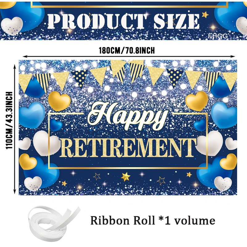 - 2... Large size: this Blue retirement backdrop banner measures properly, 1 PC 70.8x43.3inch, it is large enough to decorate retirement party Decorations and take photos, make you and your friends more joyful to enjoy the party