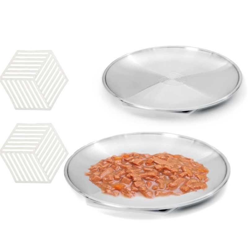 Fhiny 2PCS Stainless Steel Cat Dishes with Non-Slip Mat, 7.6" Dia Relief of Whisker Fatigue Kitten Bowl Shallow & Wide Bowl for Wet & Dry Food Flat Cat Dish Plate for Kitten Puppy