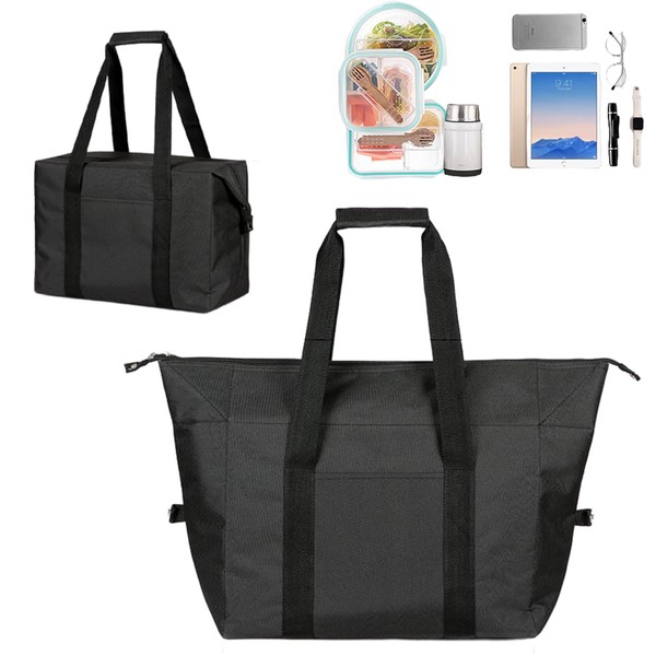 Fhioevt Foldable Cool Bag, 20 L Cool Bag, Large Picnic Bag, Cool Bags, Thermal Bag with Solening, Foldable, Insulated Bag, Cooler Bag for Camping, Picnic, Food Transport, Shopping (Black)