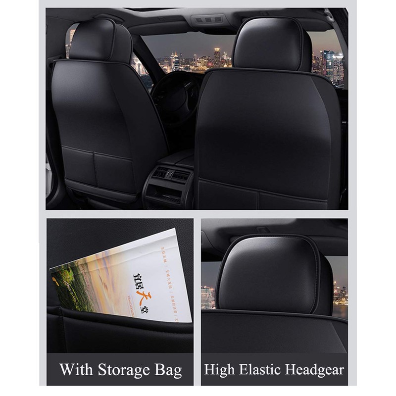 - This car seat cushions is full coverage protection, full coverage headrest cover, this seat cover upgraded without strips, looks more elegant. it's made of top-quality Pu leather,duralble,easy to wipe clean, Airbag compatible design.Convenient storage pocket for keys,phone and magazines.