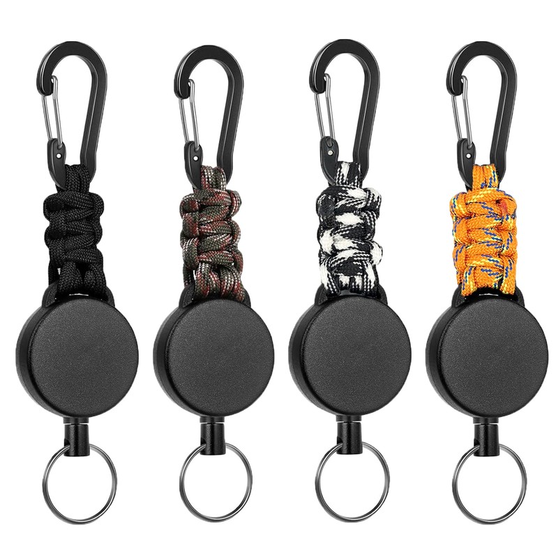 - Lightweight and strong: the key ring uses a climbing buckle with corrosion-resistant coating, tear-resistant parachute cord, ABS housing and built-in extra strong stainless steel spring. Retractable keychain is lightweight and strong, so it is an ideal tool for outdoor work and sports.