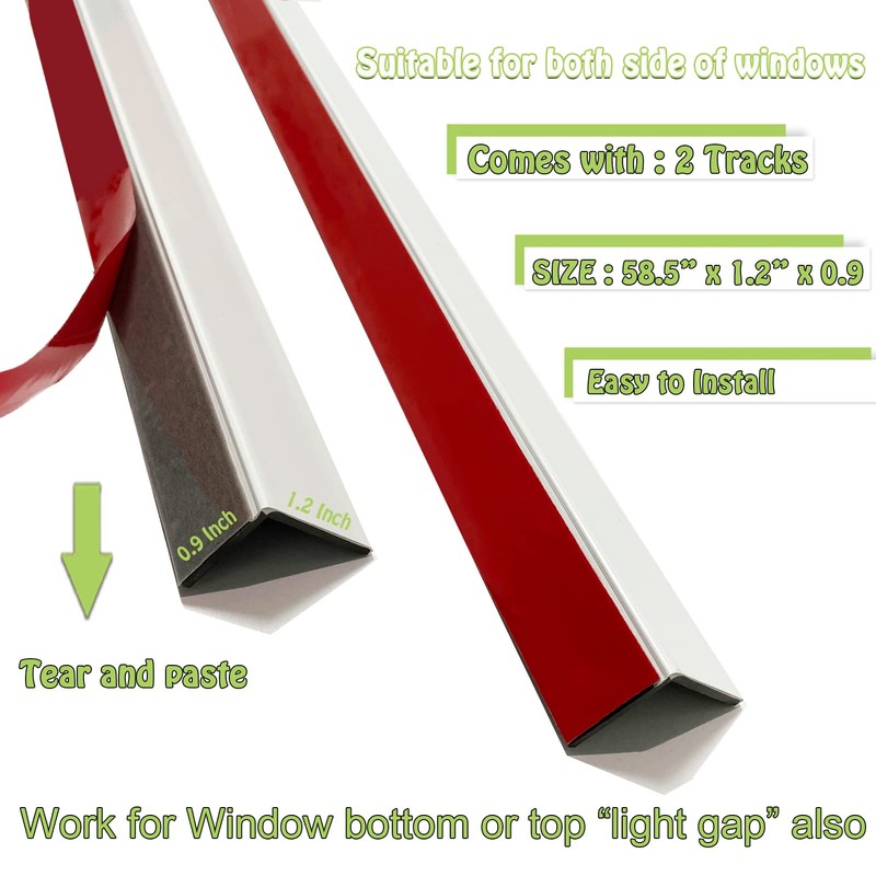 FHSBLINDS 100% Blackout PVC Light Blockers for Window Shades and Blinds - Block Along The Sides of Blackout Blinds Great for Bedroom Nursery, Blocking Strips (White, 58.5", 2pcs)