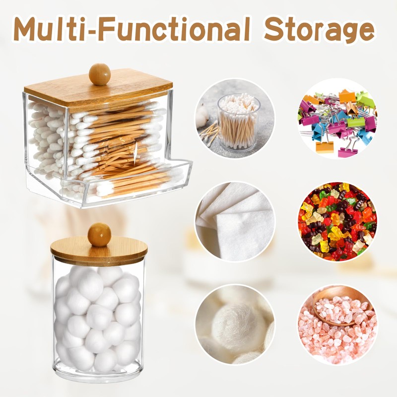 - 【Clear Simplistic Design】:Arrange your belongings stylishly with our cotton ball holder, which is perfect for organizing small items and keeping them dry and tidy. Also thanks to its crystal clear transparency, you can easily keep track of when you need to refill certain products.
