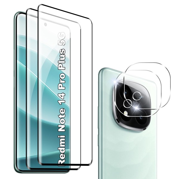 Fhyeugfy for Xiaomi Redmi Note 14 Pro+/Plus 5G Screen Protector,[2+2 Pack] Screen Protector+Camera Lens Protector,9H,Tempered Glass,Bubble-Free,Anti-Scratch
