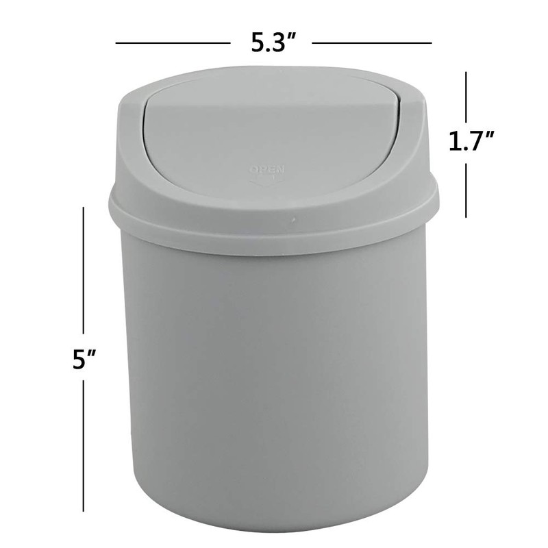 Fiazony Plastic Desktop Mini Trash Can with Swing Lid, Grey
