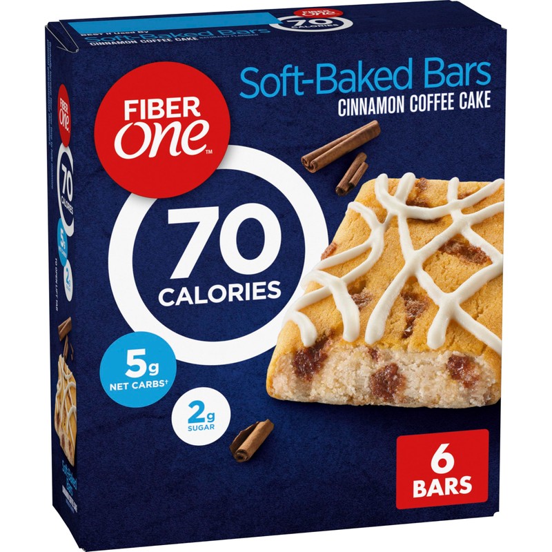 - SOFT-BAKED BARS: Fiber One 70 Calorie Cinnamon Coffee Cake Soft-Baked Bars; Delicious treats you can feel good about eating and enjoy as part of a balanced diet