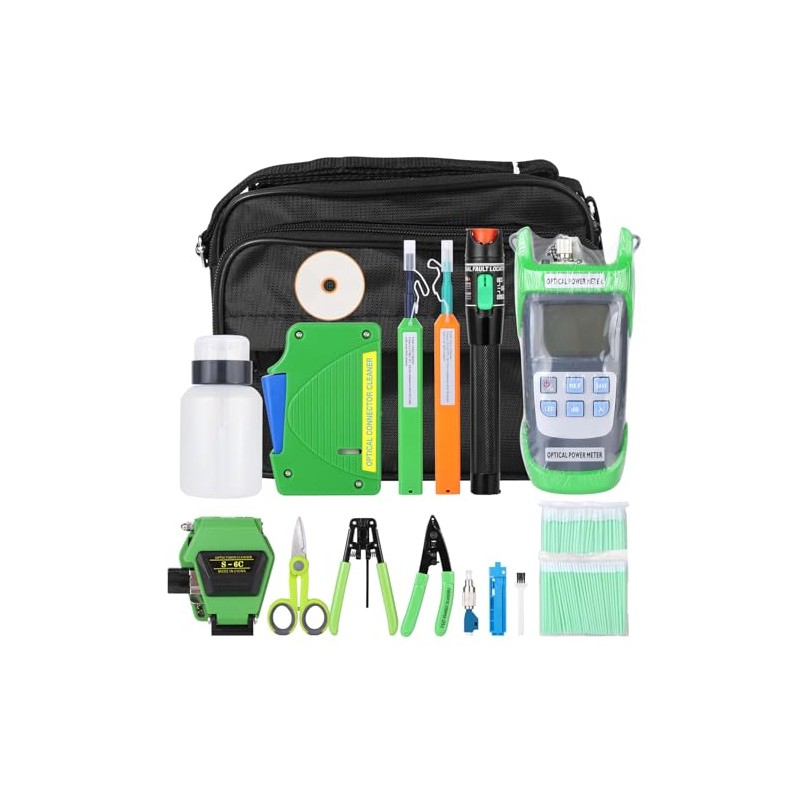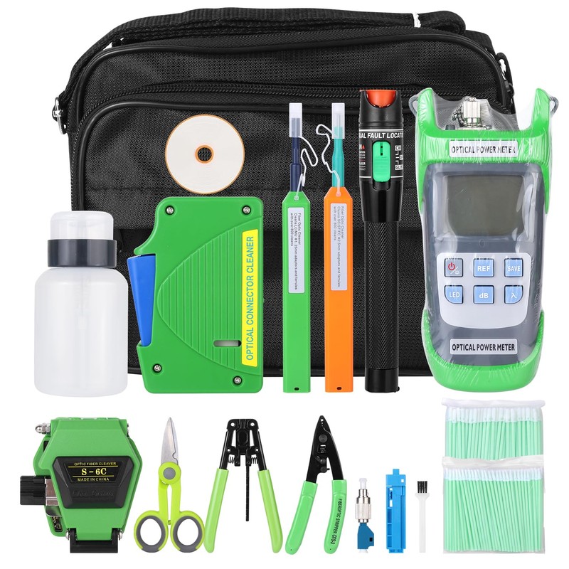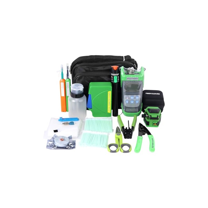 Fiber Optic FTTX Tool Kit, Fiber Tester & VFL & Stripper & Cleaver & Cleaner (Green)