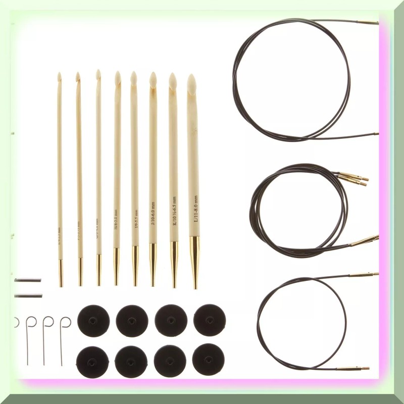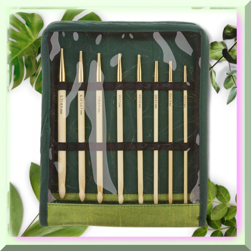 FiberFuse EcoStitch Green Bamboo Tunisian Crochet Hook Set - KP900586: Interchangeabl