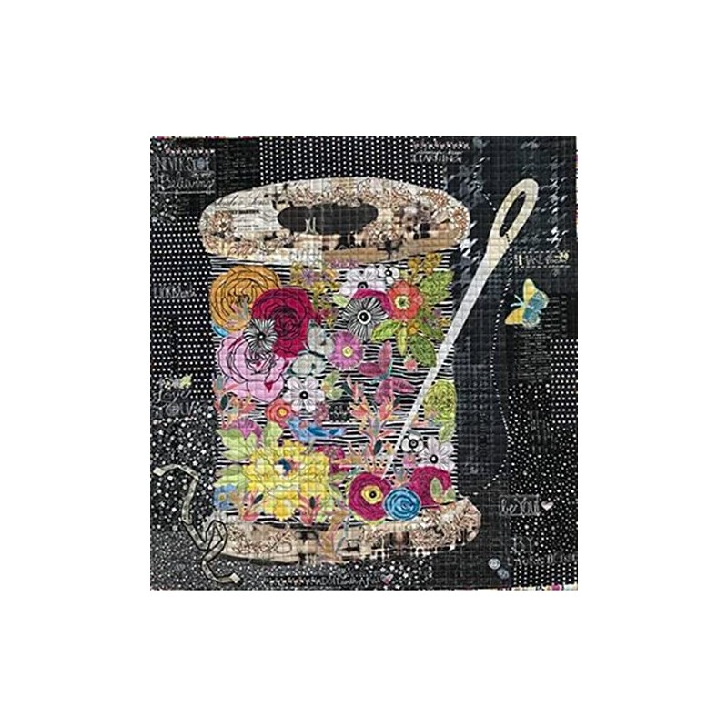 - Black backgrounds, antique looking material for your spool, and beautiful flowers on the thread