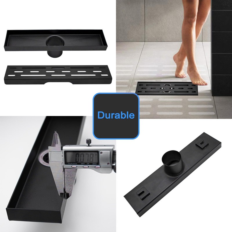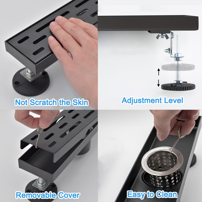 - Easy to Clean: Fibetter 12 Inch black linear shower drain's cover can be easily removed with the lift button, and stainless steel hair strainer is easy to clean the rectangle shower floor drain regularly