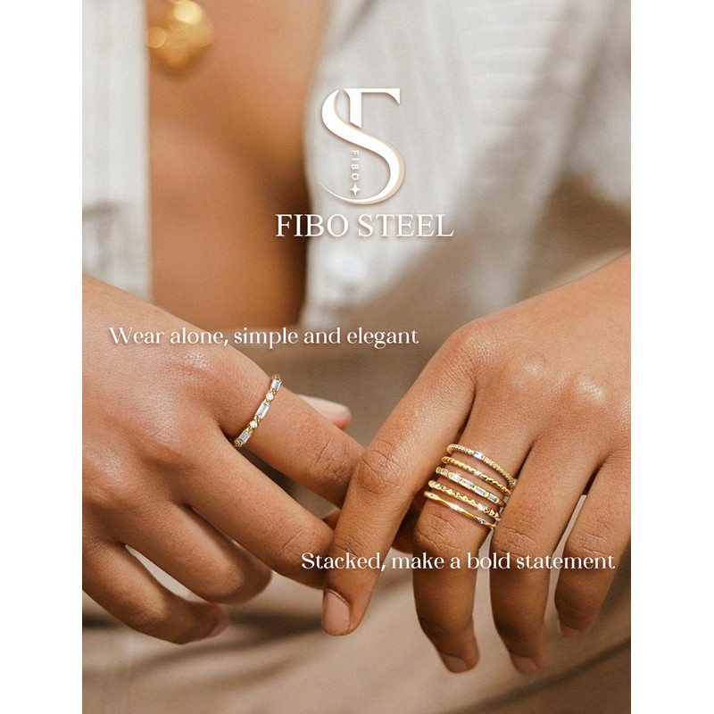 FIBO STEEL Gold Stackable Rings for Women Non Tarnish Dainty Ring Set Cubic Zirconia Wedding Band Promise Bands for Her Women's Jewelry Size 5-10 Rings Size 8