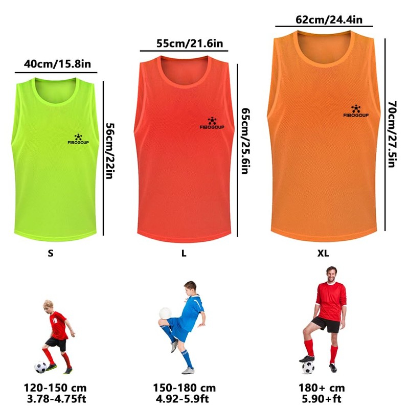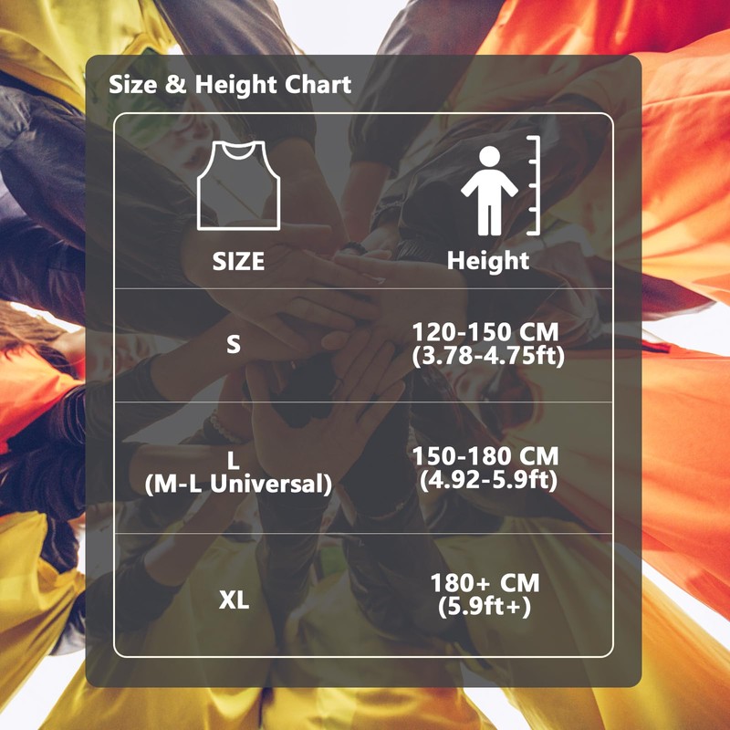 - Team training vests that are universal sizes fit a variety of age and height ranges: S (under 150 cm), L (150-180 cm), XL (from 180 cm)