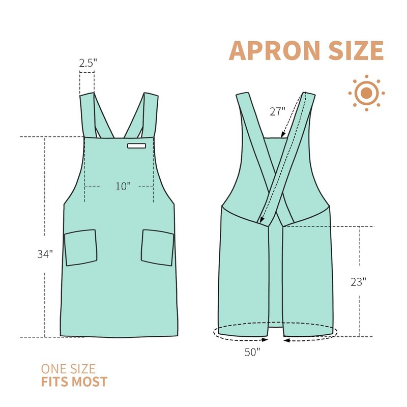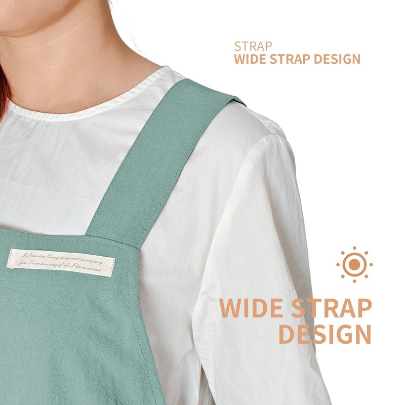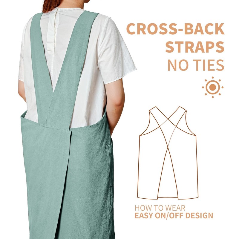 fibrosafe Cotton Apron for Women with Pockets, Cross Back Gardening Apron for Cooking, Baking and Cleaning with Split Hem