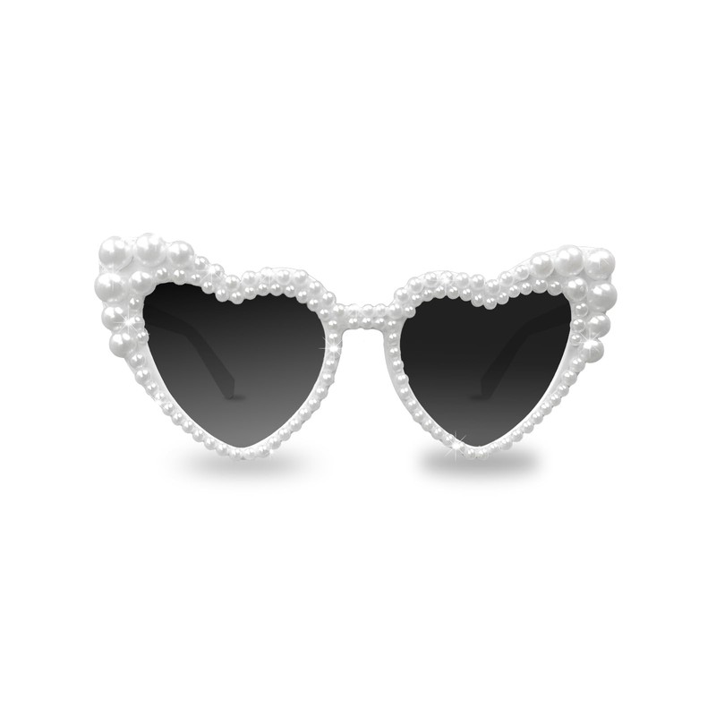 Fibye Heart Shape Bride Sunglasses, White with Pearl Accents