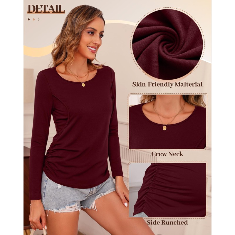 - Matching: Women's long-sleeved crew neck top can be worn alone in fall, or as an inner layer in winter to keep warm. Side opening design without lifting the whole clothes, allows you to avoid the cold. You can match it with jeans, leggings, or trousers