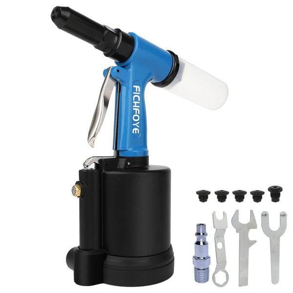 FICHFOYE Heavy Duty Pneumatic Rivet Gun, 3916lbs Rivet Gun Set- 3/32", 1/8", 5/32", 3/16", 1/4" Air Riveter with NPT 1/4 inch for Automotive, Construction, Manufacturing Industries