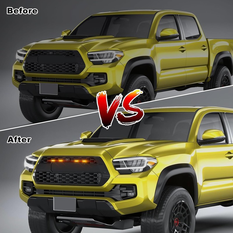 - Easy Install for Plug-and-Play & No Drilling Required: The front grill lights for toyota tacoma 2020-2023 easily snap into the front grille for 20 minutes finish mounting. Light and Wire for Plug-and-Play & Grille for No Drill.