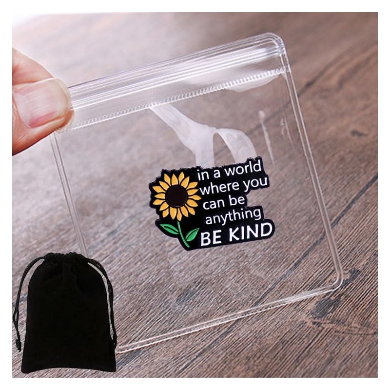 Ficsowy Enamel Pins Inspirational Sunflower Lapel Pin,In A World Where You Can Be Anything, Kindness Is Always Fashion, Gift for Friend, Women, Men, Teens