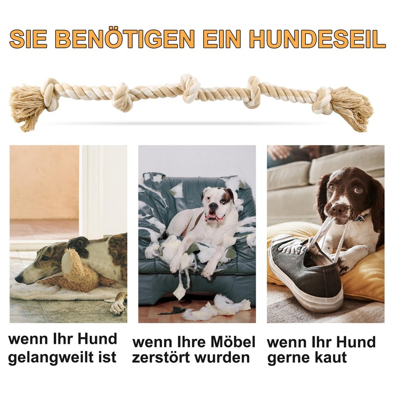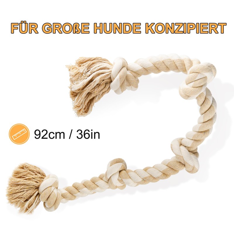 - GREAT DOG TOY FOR Tug of War & Chew - This large breed rope toy is the best length and sturdy for tug of war. Proper length and sturdy rope dog toys are great for boredom and bonding with your furry friends. Effective way to clean teeth when chewing.
