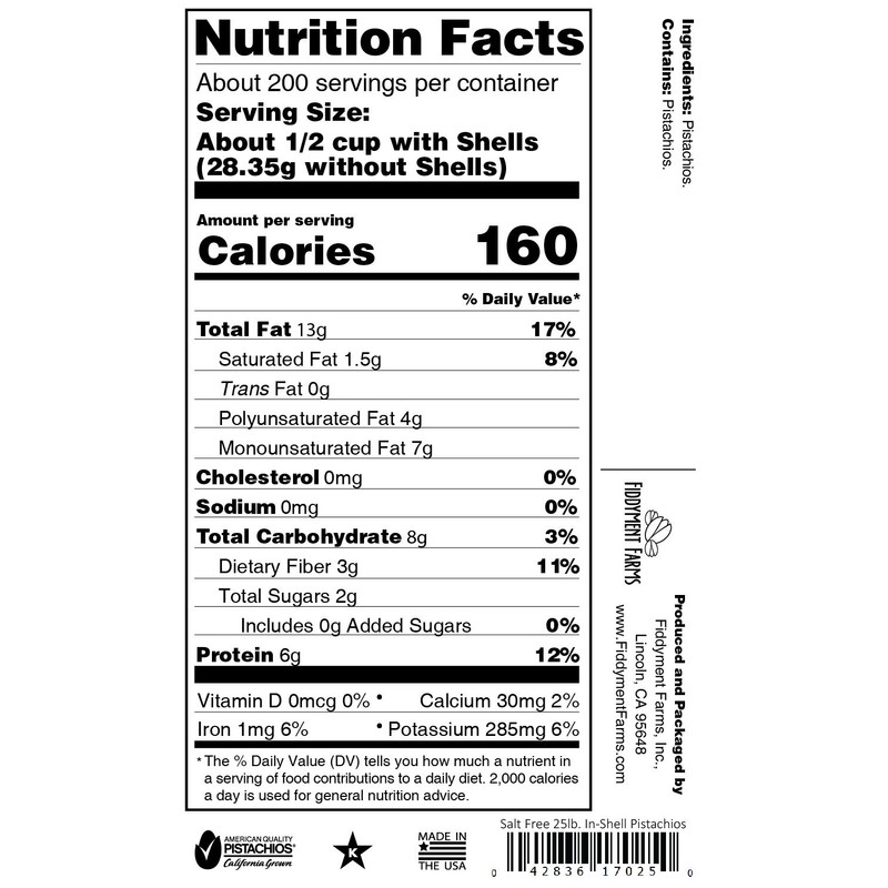 Fiddyment Farms 25 Lbs Salt Free In-shell Pistachios