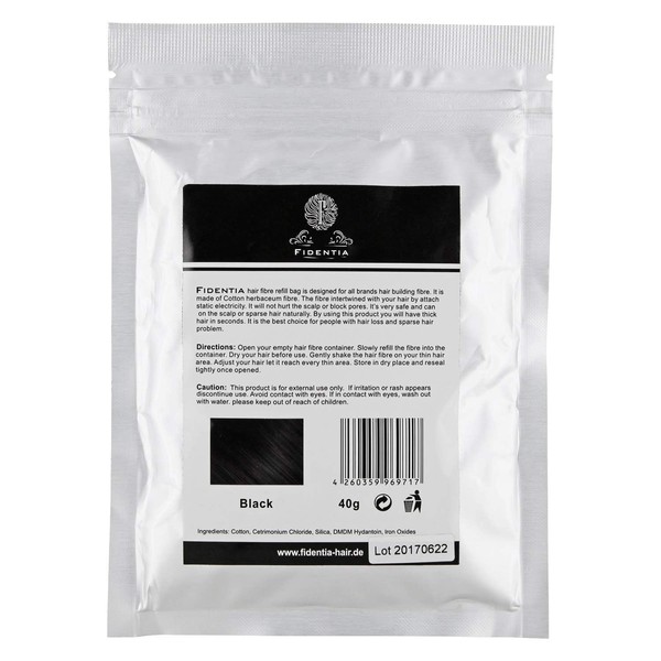 - FIDENTIA 40 g refill bag - so you can easily refill your empty Fidentia shedding hair can. Simply pull the sieve attachment from the shaker and refill it.