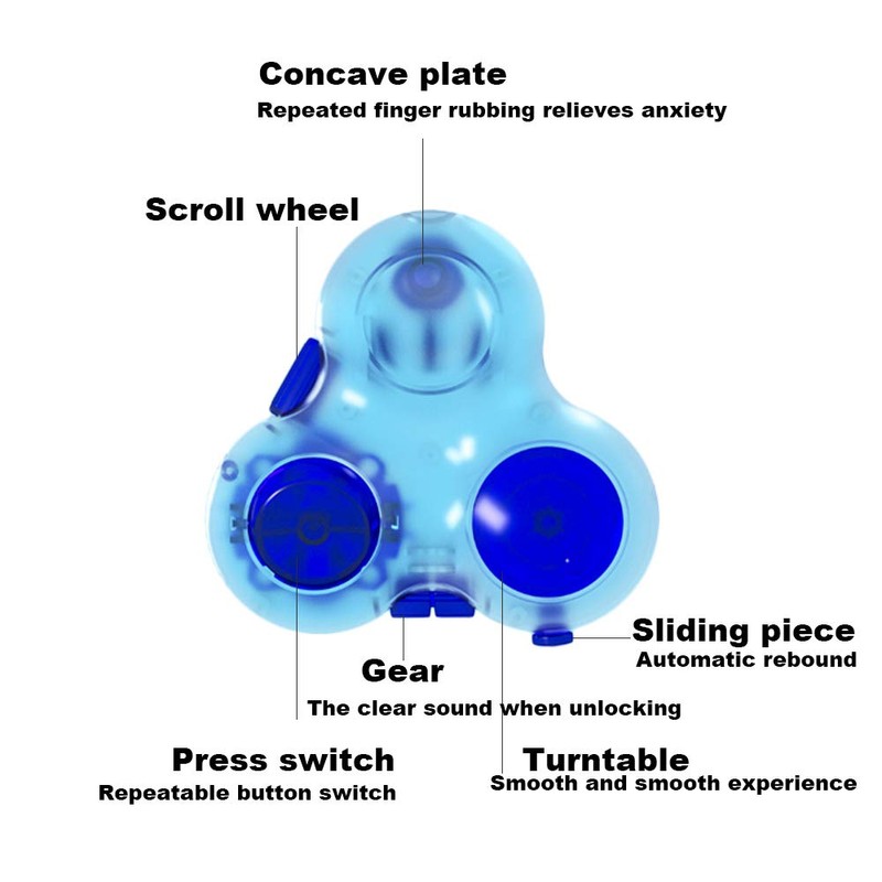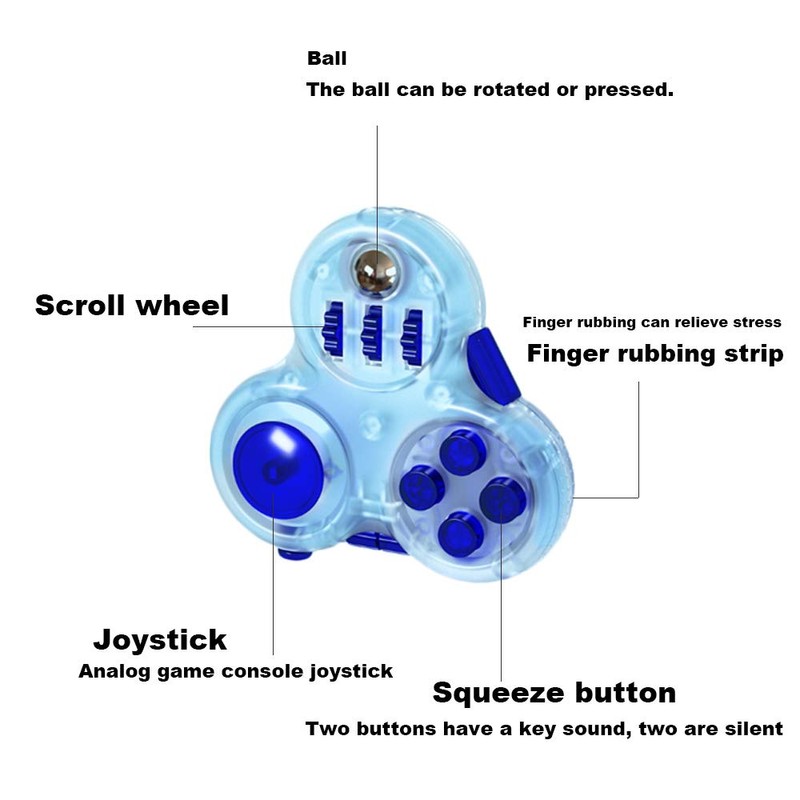 - Stress reliever toys with 11 functions: gears, rotating disks, button levers, joysticks, switches, finger massage, etc. With 11 Fidget Functions the Fidget Retro Provides Never-Ending Fidgeting! The 11 Fidget Functions.Designed for those who can't keep still! It’s much easier to relax and focus on things by tapping, flicking or spinning. Very suitable for use in work, school and home.