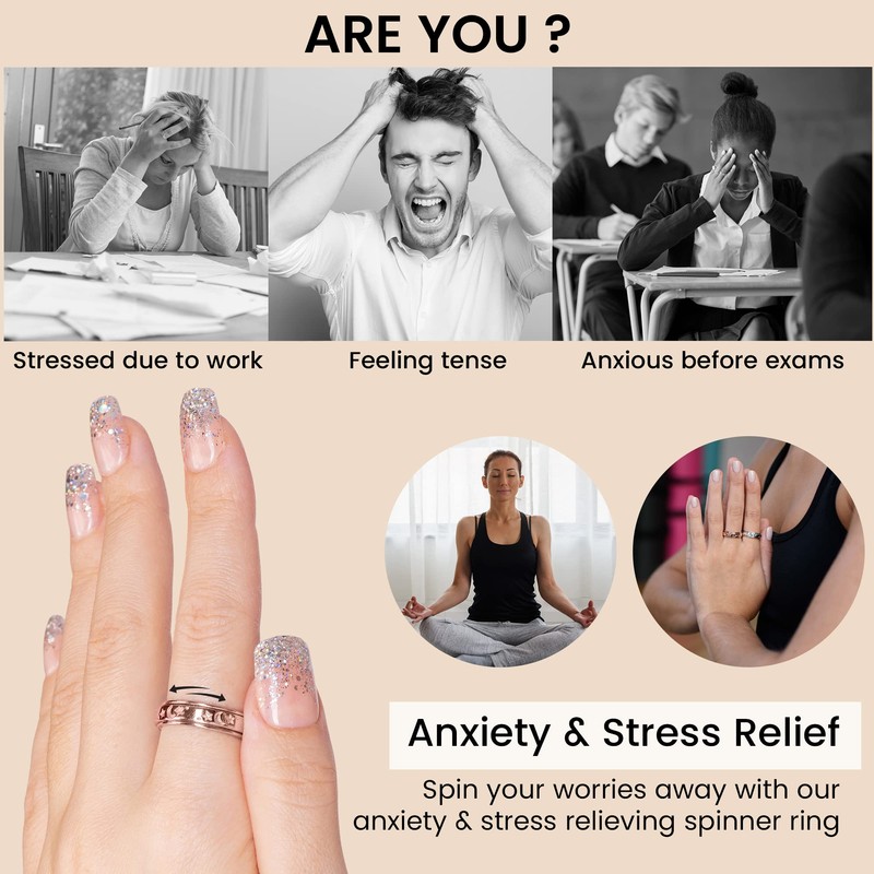 - Reduces Stress and Anxiety: Do you get anxious during important meetings, interviews, or school exams? Are you afraid of something and need to calm your nerves? Or do you want to get rid of bad habits like biting your nails or scratching your skin? Our spinner ring can help in all of these situations with its spinning motion, providing a healthy and calming distraction to ease stress and anxiety. The ring can help to improve focus, concentration, and provide a sense of relaxation.