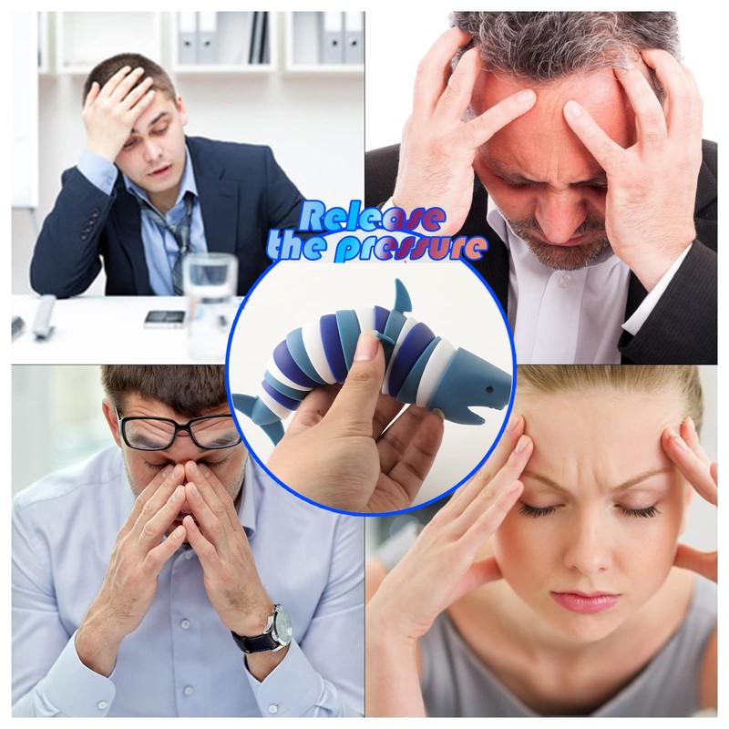 Fidget Slug, 3D Articulated Stretch Shark Stress Reliever, Sensory Stress Relief for Adults and Kids, Pressure Relieving and Anti-Anxiety Office Desk Toy