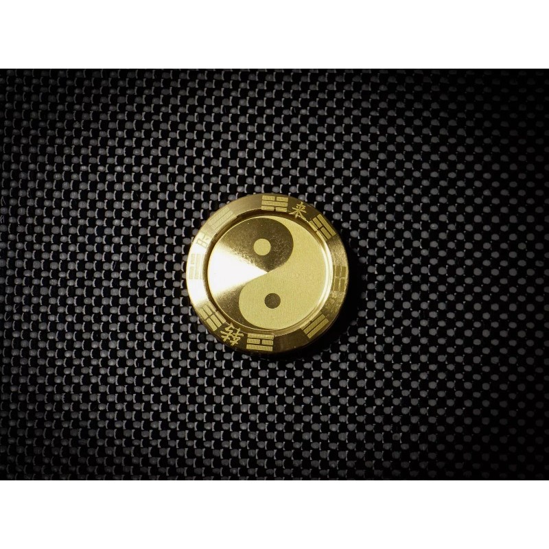 Worry coin meets fidget clicker. Brass construction, and Yin Yang laser engraving, this worry coin is the ultimate Zen EDC.
