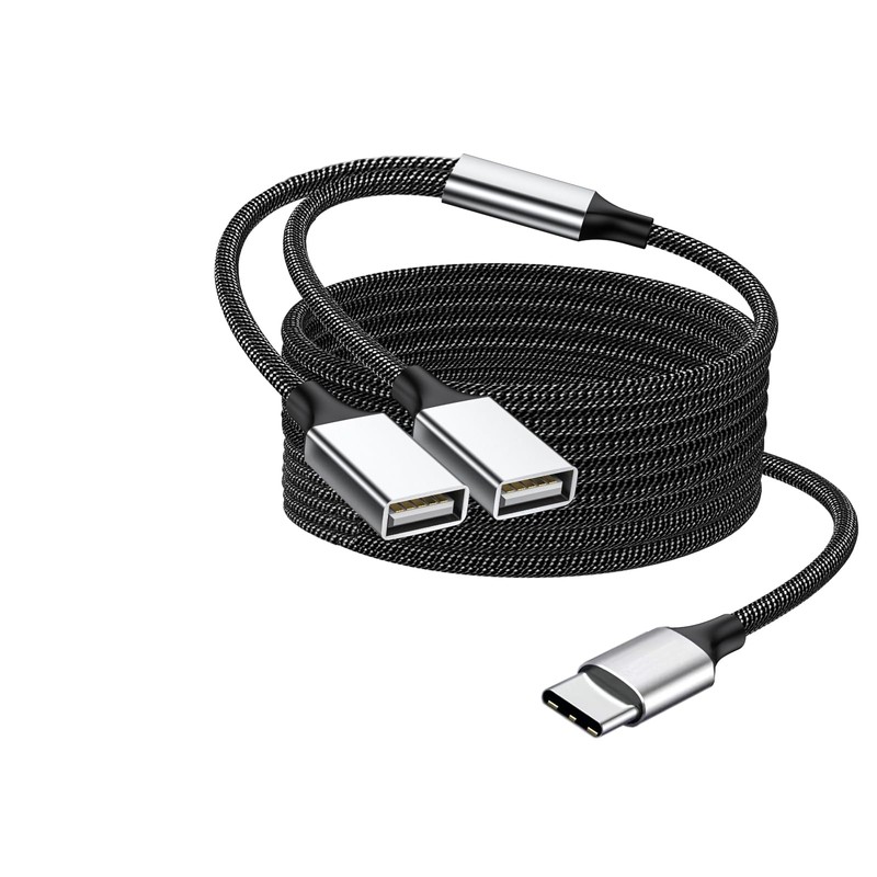 Fidioto USB C to Double USB Cable Splitter 6.6Ft, Type C to Two Type A Adapter for Laptop,Tablet, Telephone,Flash Disk Drive, Gaming Consoles
