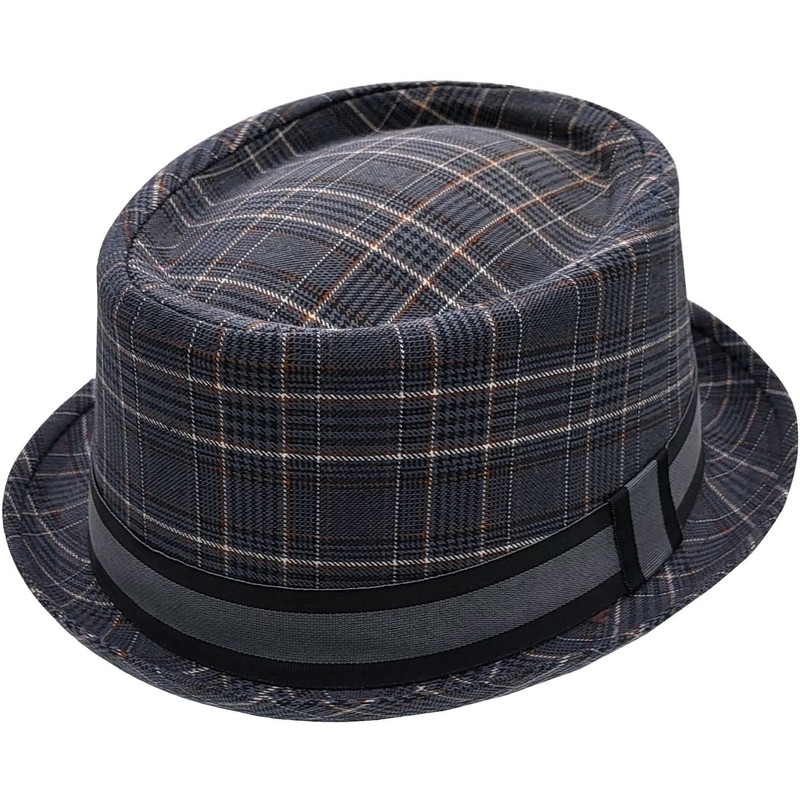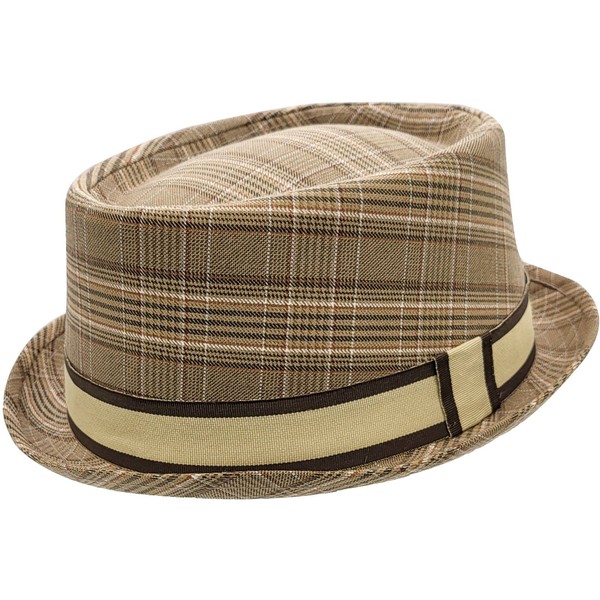 FIDRA Checked Porkpie Hat with Stripe Band, 2 Colours (Brown)