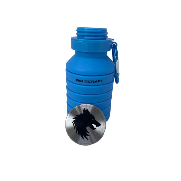 FIELDCRAFT Collapsible Silicone Water Bottle, BPA Free, Foldable, Leak Proof with Carabiner (Blue)