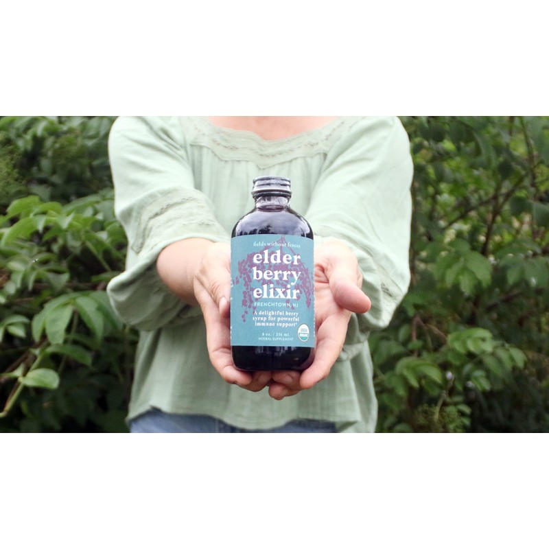 Fields Without Fences Elderberry Syrup – Sambucus Elderberry Immune Support for Adults & Kids – Certified Organic, Farm-Fresh Elderberry Elixir – Black Elderberry Extract Made in The USA (4 oz)