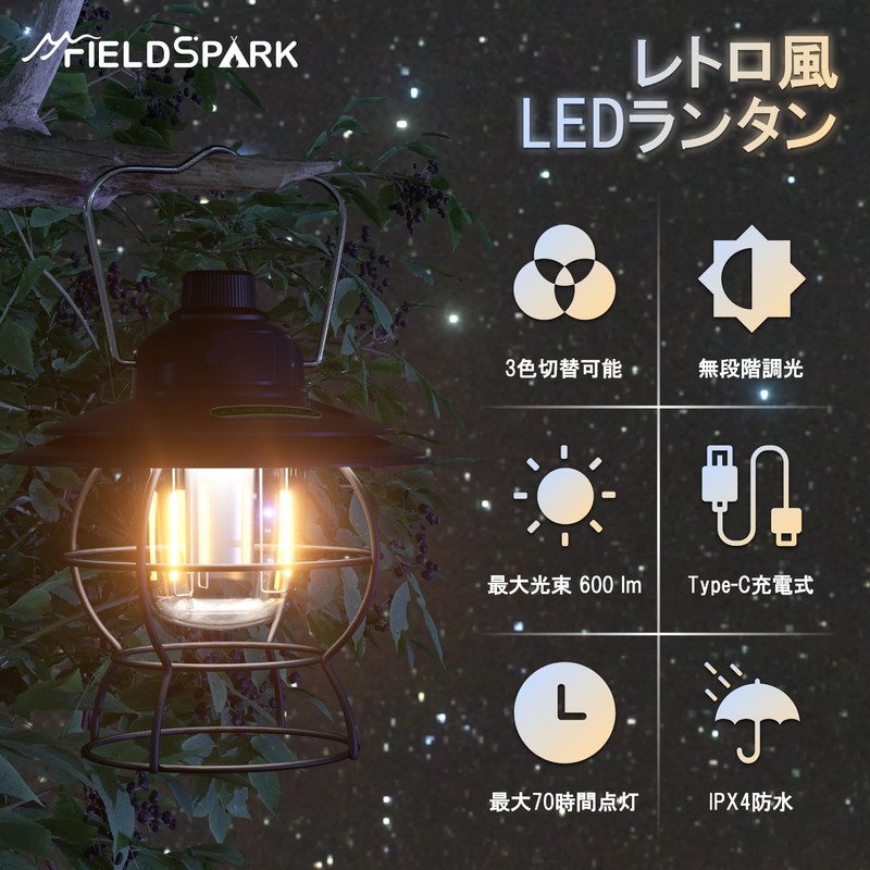 FIELDSPARK USB Rechargeable Retro LED Lantern, Antique Black
