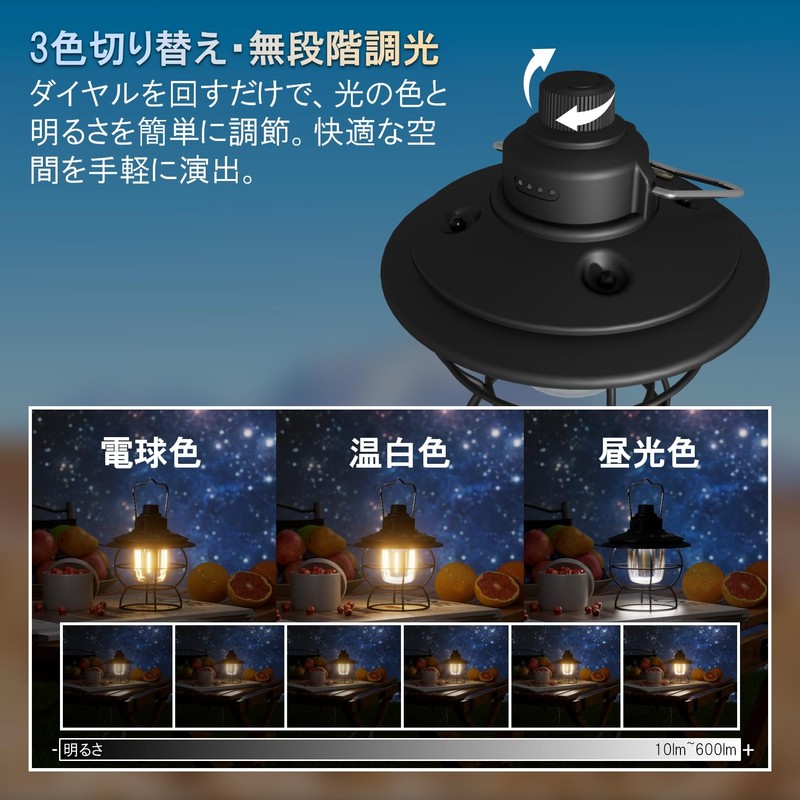 - 3 Color Switching, Stepless Dimming: Turn the knob left and right to switch between 3 colors (light bulb color, daylight white, light bulb color + daylight white), so you can choose between warm and practical white colors that provide a gentle atmosphere. Regarding brightness, it can be adjusted steplessly from 10 to 600 lumens. You can adjust it to suit the occasion or mood, creating the best atmosphere every time