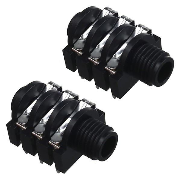 Fielect 2Pcs PCB Mount 6.35mm 6 Pin Socket Headphone Stereo Jack Audio Video Connector Black