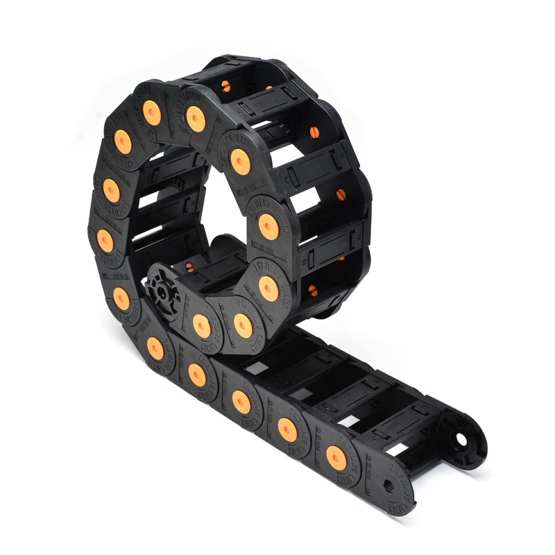 3. Drag chain is designed to surround and guide flexible electrical cables and hydraulic or pneumatic hoses connected to moving automated machinery.They reduce wear and stress on cables and hoses, prevent entanglement.