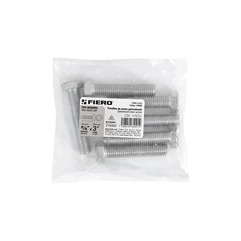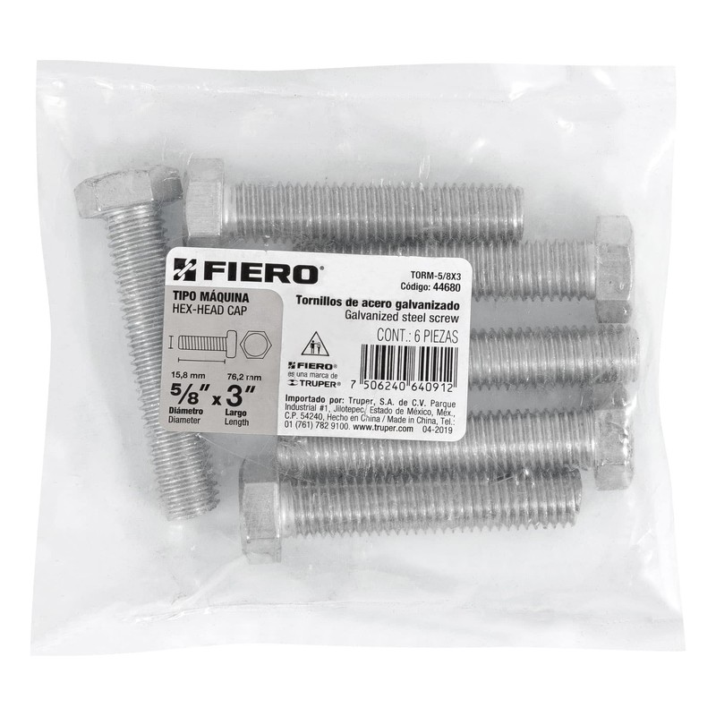 Fiero TORM-5/8X3, Tornillo tipo máquina, 5/8 x 3", bolsa con 6 pzas