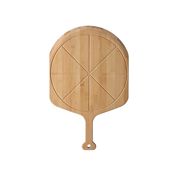 - STURDY DOUBLE SIDED PIZZA PEEL; Made from three layers of the natural organic bamboo laminate - it will keep it from cracking. When cared for properly, Fiery Chef's Bamboo pizza peel will not split, warp or splinter. For better even cutting pizza, we made V grooves on this pizza peel, which can guide you cut your pizza into 8 pieces, with exactly same sizes. Also has a smooth oiled surface for a splinter free and attractive finish.
