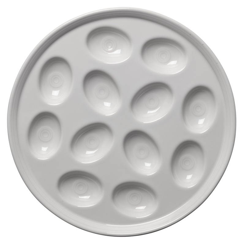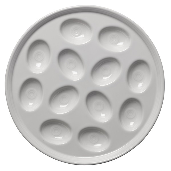 Fiesta 11-Inch Egg Tray manufactured by The Homer Laughlin China Company. America's largest domestic producer of dinnerware, and the sole manufacturer of all Fiesta dinnerware. All Fiesta pieces are Microwave safe, Oven-proof, Dishwasher safe, Freezerproof, Lead-Free, and Made in America with the implementation of many green practices. The very durable glaze is great for everyday use. Fiesta as a pattern has stood the test of time, and is typically passed down from one generation to the next. We have kept the pattern constant through the years so that you can count on us to be here when you decide to expand or change your collection. New pieces and colors are added every so often to keep things interesting. Currently, Fiesta is the most collected dinnerware in America.