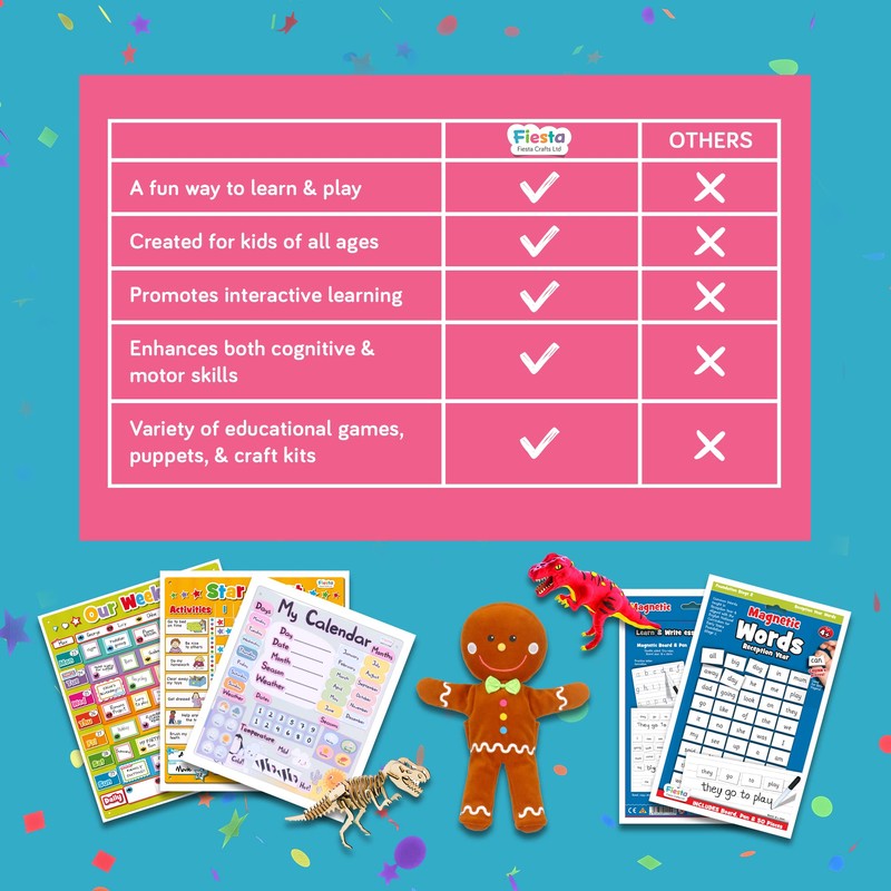 - Educational Toys for 4 Year Olds: Fiesta Crafts innovates learning resources and kids gifts in the form of puppets, craft kits, and magnetic letters for children. Let's help your kids learn the basics in a fun and stimulating way!