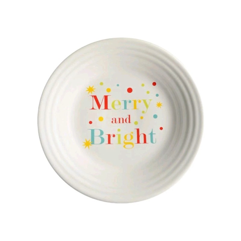 The New Fiesta® Merry & Bright 9" Luncheon Plate is a contemporary original piece of dinnerware from the Fiesta product line. This ceramic plate features a multi-color Merry & Bright pattern, perfect for the Christmas occasion. Made in America with pottery production techniques, this 9" luncheon plate is a beautiful and stylish addition to any holiday table setting.