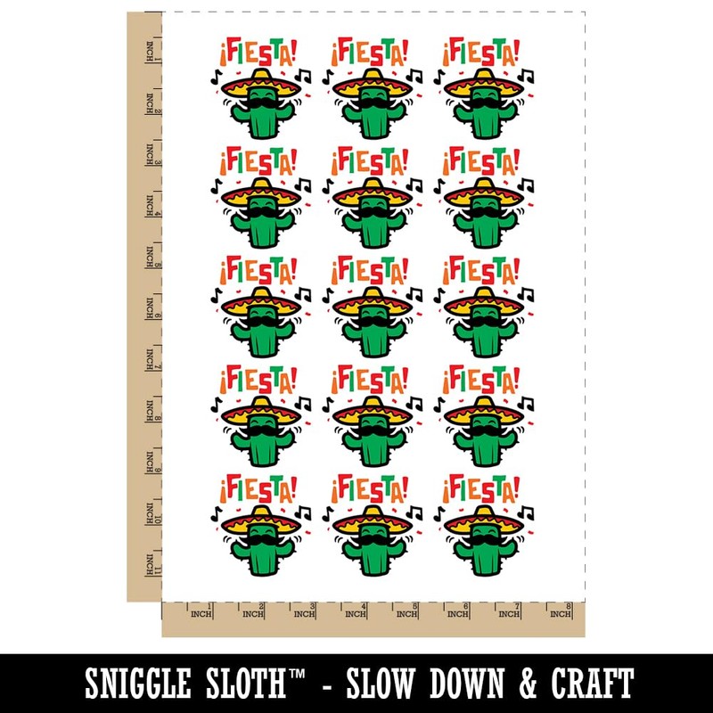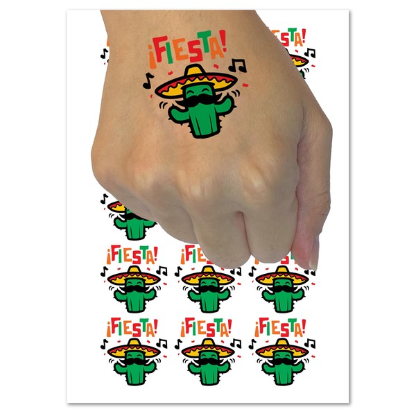 Fiesta Party Cactus with Sombrero Temporary Tattoo Water Resistant Fake Body Art Set Collection - 15 2" Tattoos (1 Sheet)