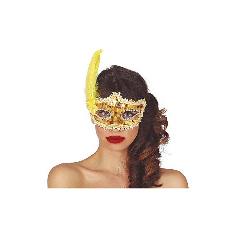 - FIESTAS GUIRCA Goldene Augenmaske mit Feder