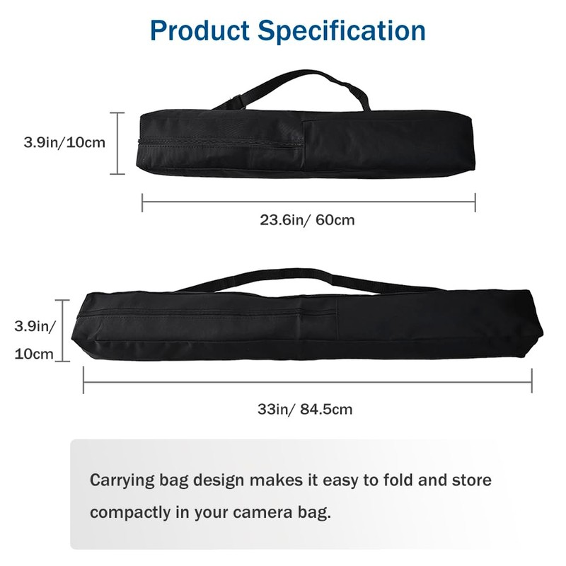 - Compact and Portable: Dimension:23.6x3.9x3.9in and 33.2x3.9x3.9in. This monopod carrying bag design makes it easy to fold and store compactly, whether in your camera bag or coat pockets.