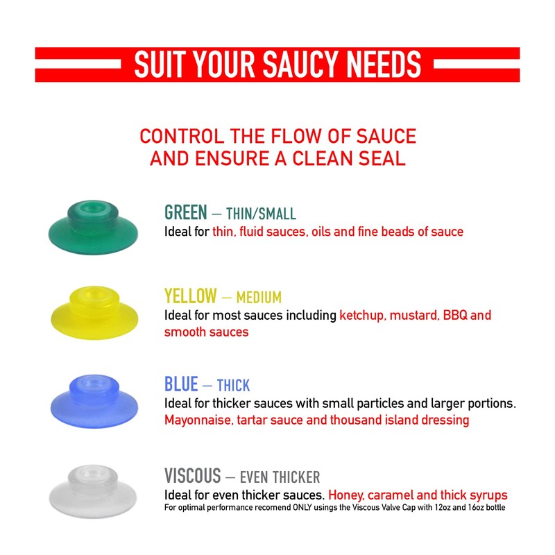 - Fast Dispensing – Gravity pulls sauce down towards the valve, eliminating the need to bang bottles on the counter and ensuring sauce is always ready to dispense.