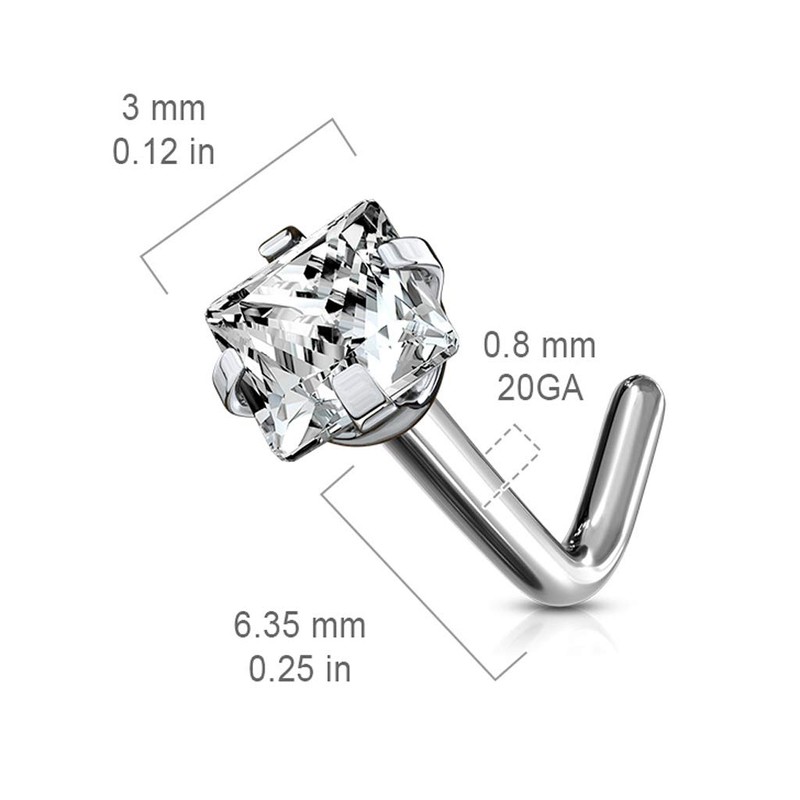 FIFTH CUE Prong Set Square Diamond CZ Solid Grade 23 Titanium L Bend Stud Nose Ring, Metal, cubic-zirconia