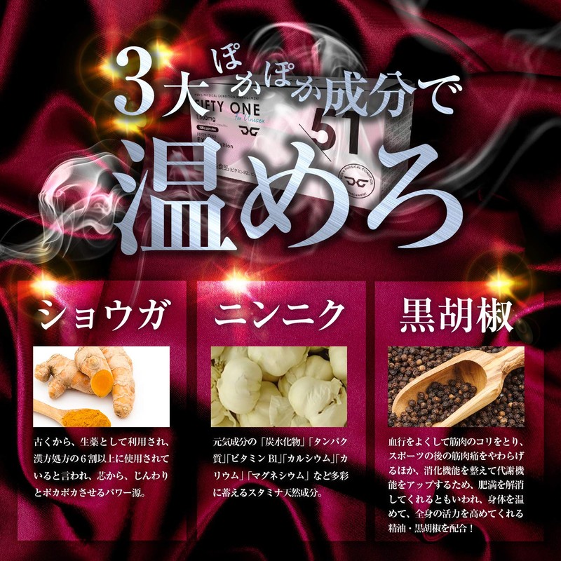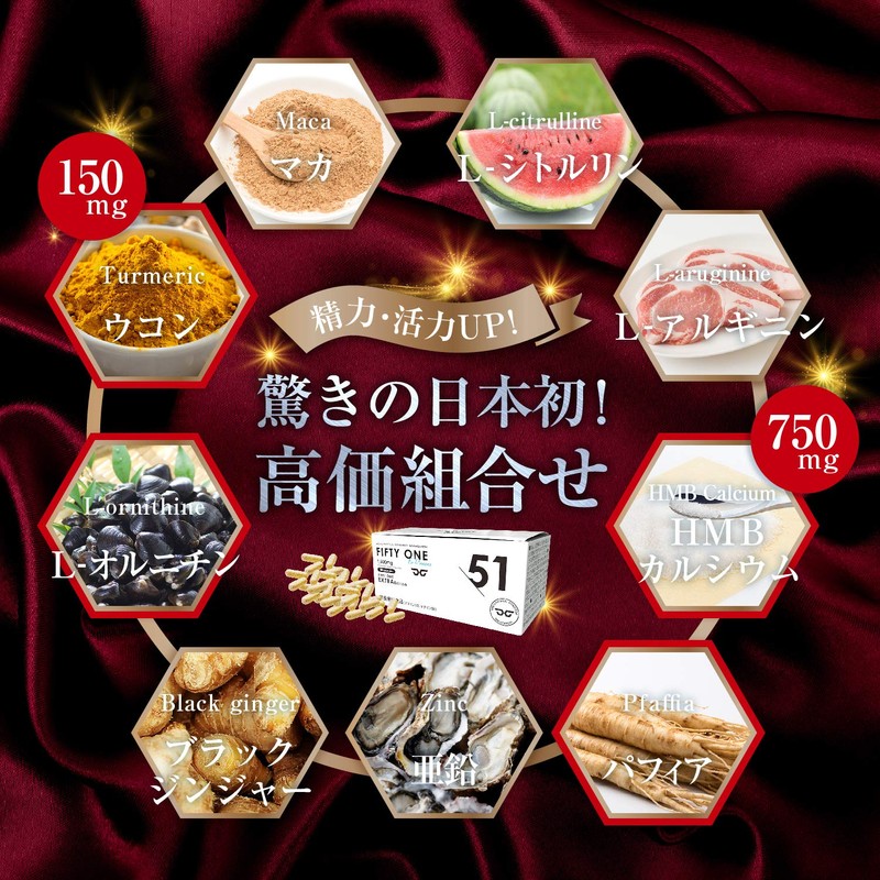 - 【五一堂 - マルチ・エナジー増大サプリメント】 限られた1日1日の時間、日中も日没後の時間も、気力・体力共に充実させて頂きたい、開発をした自分たちもそうありたいという強い想いから生まれた五一堂のマルチ・エナジー増大サプリメント。副作用の伴う薬ではなく、毎日を快活元気に過ごそうとされる全てのお客様のために、五一堂は日々研究と取材を重ね、より良い天然成分をより良い形でお届けすることに全力を傾けております。我々は、敢えてブランド名を冠しない商品開発を行い、ここから日本発の世界ブランドを目指してまいります。その為、製造・検品は全て、〈医薬品製造許可〉〈医薬部外品製造許可〉〈医療機器製造許可〉〈化粧品製造許可〉を持つ老舗製薬会社の国内工場にて一つ一つ丁寧に行い、1日1日を大切に過ごされる世界中のお客様にご利用いただけるよう、細心の注意を払いながら、モノ作りに励んでまいります。我々自身が毎日飲み、自信を持ってお届けするFIFTYONEを、是非一度お手にとり、お試しくださいませ。お客様からの応援メッセージが研究員並びに開発関係者全員の励みになっておりますので、レビューの投稿をお待ちしております。